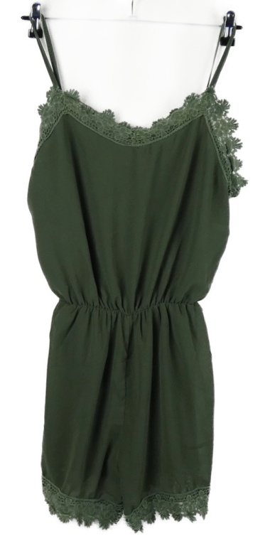 Dámský khaki šifonový letní overal s krajkou