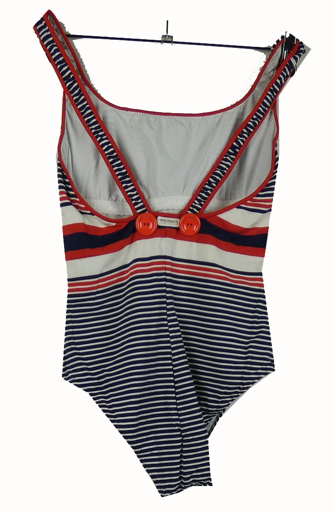 Dámské tmavomodro-bílo-červené pruhované jednodílné plavky