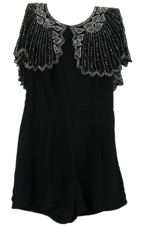 Dámský černý společenský kraťasový overal s volánky s korálky TFNC