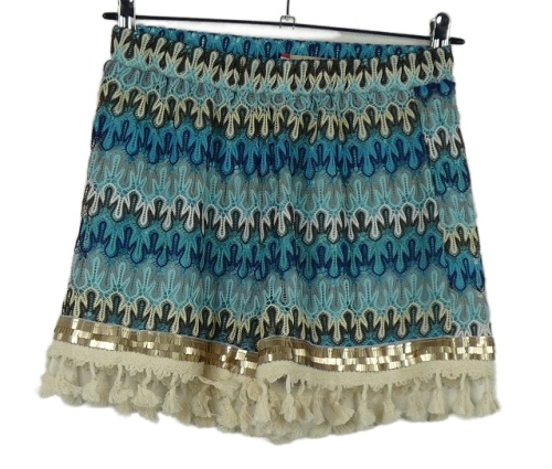 Dámské modro-béžové vzorované krajkové šaty s třásněmi Azaka