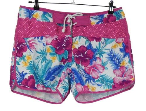 Dámské tmavorůžovo-modro-bílé květované plážové kraťasy Mantaray