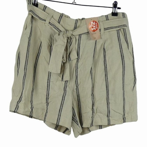Nové - Dámské béžovo-černé pruhované lněné kraťasy s páskem TU