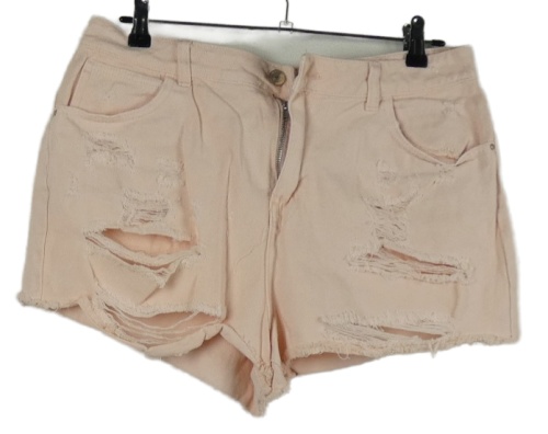 Dámské světlerůžové riflové kraťasy s dírami Denim