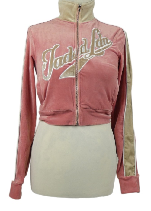 Dámská růžovo-béžová sametová crop mikina s logem Jaded vel. 32