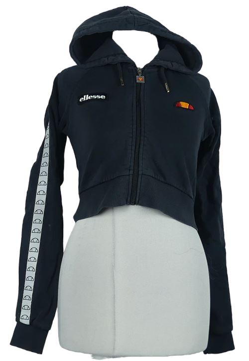 • Dámská tmavomodrá propínací crop mikina s logem a kapucí Ellesse vel. 32
