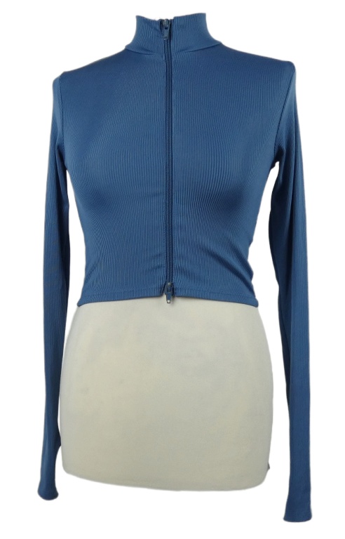 Dámská modrá žebrovaná crop propínací mikina FB Sister