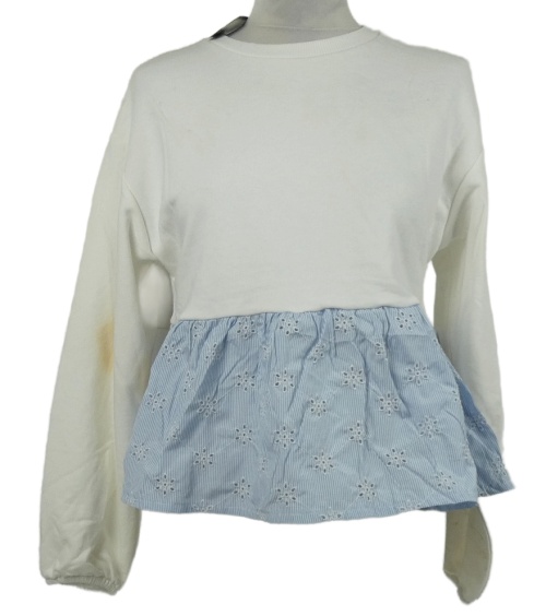 Nové - Dámská bílá mikina s modrým madeirovým volánem Primark