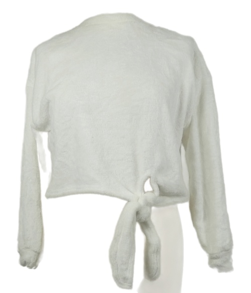 Dámská bílá chlupatá crop mikina s uzlem Shein