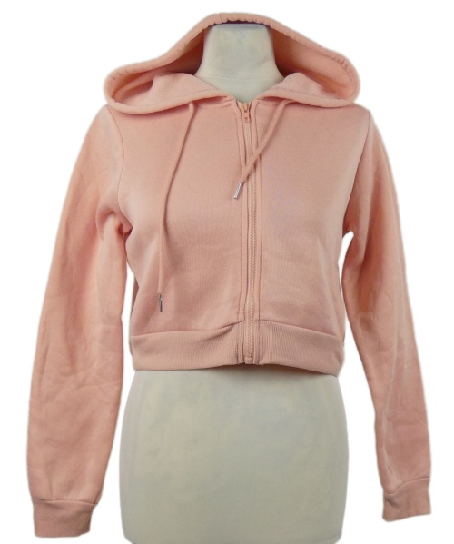 Dámská světlerůžová crop propínací mikina s kapucí Shein