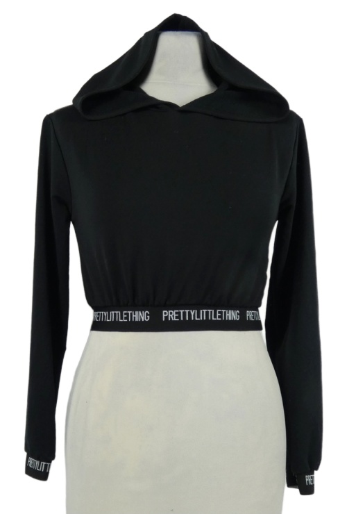 • Dámská černá sportovní crop mikina s logy a kapucí PrettyLittle Thing