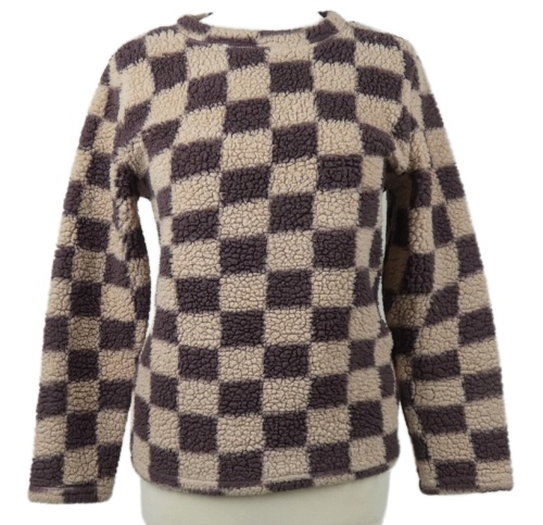 Dámská světlerůžovo-vínová kostkovaná huňatá mikina Primark