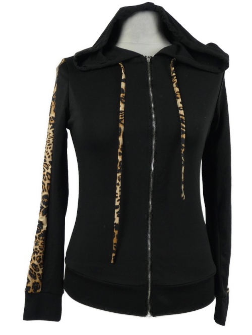 Dámská černo-vzorovaná sportovní propínací mikina s kapucí