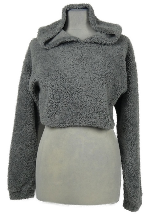 Dámská šedá chlupatá crop mikina s kapucí
