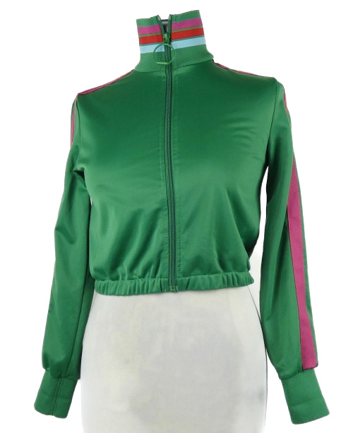 Dámská zelená crop propínací mkina s proužky a rolákem Pimkie
