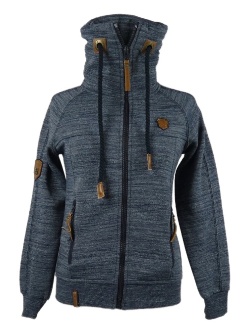 • Dámská tmavomodrá melírovaná propínací mikina s komínovým límcem Naketano