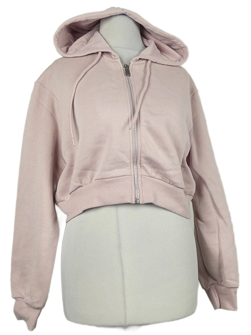 Dámská světlerůžová crop propínací mikina s kapucí H&M