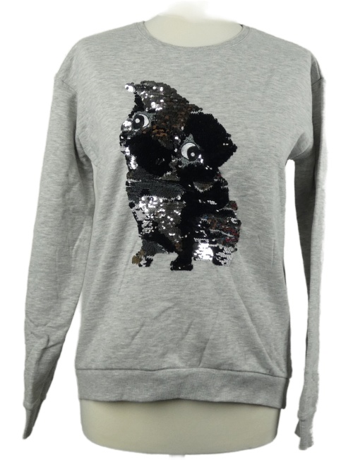 Dámská šedá mikina s pejskem z flitrů Colours of the World
