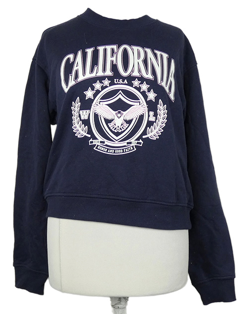 Dámská tmavomodrá crop mikina s potiskem H&M