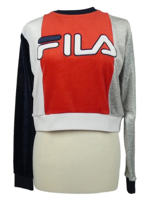 Dámská šedo-tmavomodro-červená sametová crop mikina s logem Fila