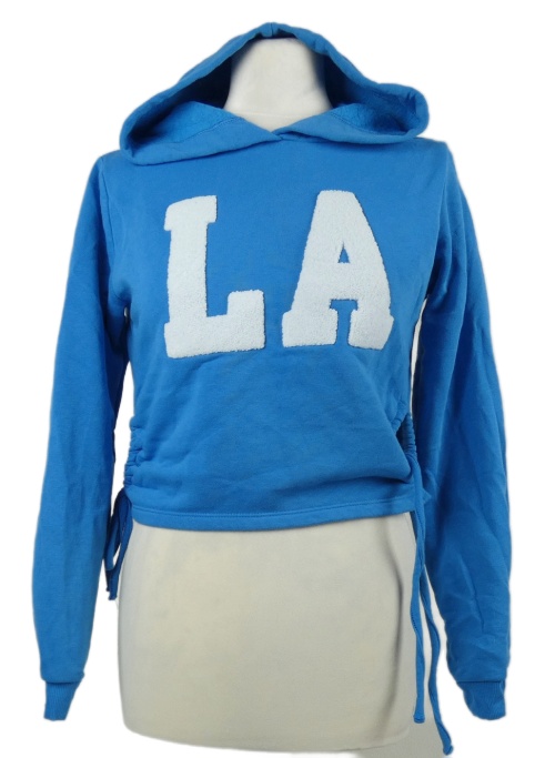 Dámská modrá crop mikina s nápisem a kapucí Select