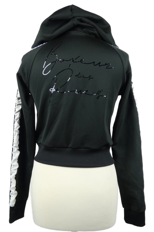 Dámská černá crop propínací mikina s pruhy a kapucí Boxeur