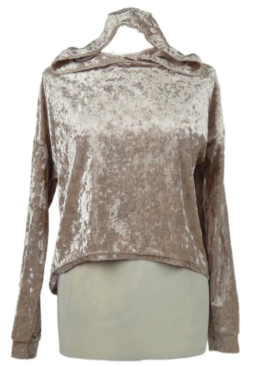Dámská světlerůžová sametová crop mikina s kapucí FB Sister