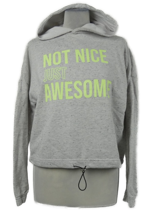 Dámská šedá melírovaná crop mikina s nápisem a kapucí Page one young