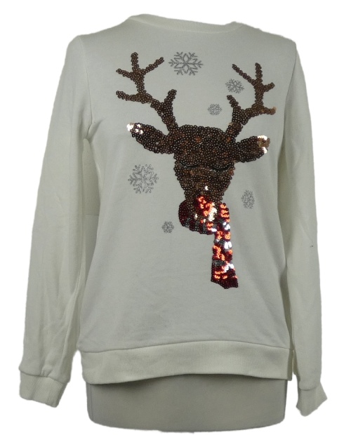 Dámská bílá mikina se sobem z flitrů C&A