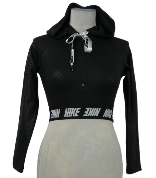 Dámská černá propínací crop sportovní mikina s kapucí a logem Nike