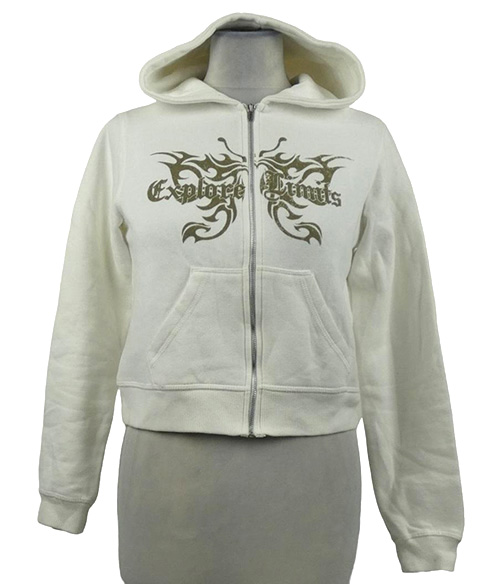 Dámská bílá crop propínací mikina s nápisem a kapucí Pull & Bear