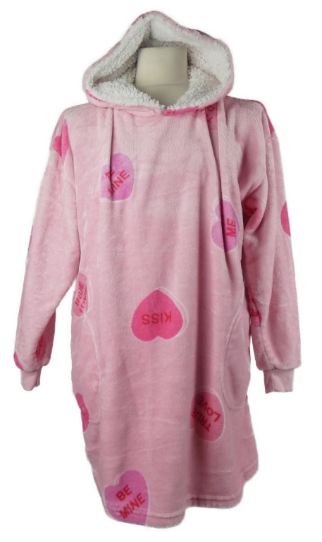 Dámská světlerůžová plyšová domácí oversized mikina s nápisy a kapucí