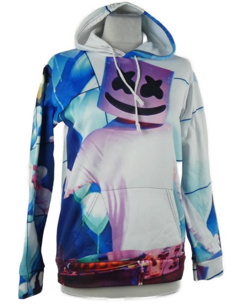 Dámská bílo-modro-růžová mikina s potiskem a kapucí