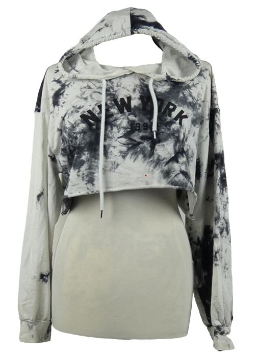 Dámská smetanovo-tmavošedá batikovaná crop mikina s nápisem a kapucí Shein