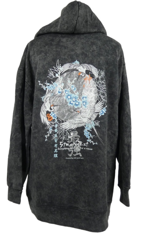 Dámská tmavošedá mikinová tunika s potiskem a kapucí Silkroad