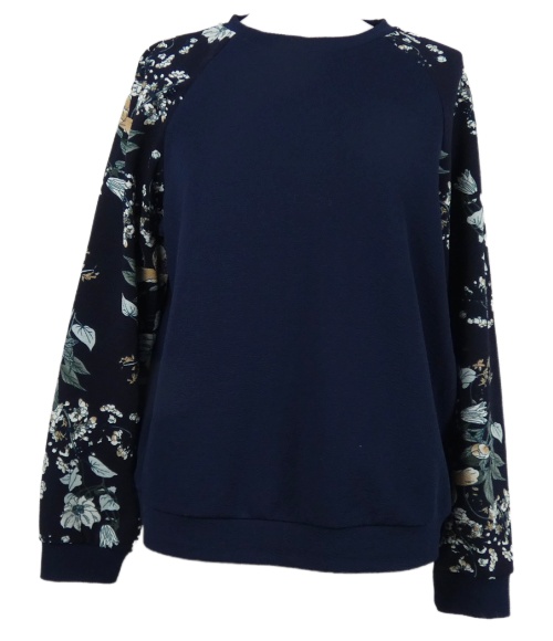 Dámská tmavomodrá mikina s květovanými rukávy Shein