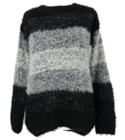 Dámský černo-šedý pruhovaný chlupatý svetr Pean Pascale