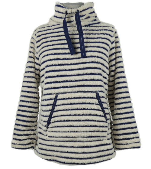 • Dámská bílo-tmavomodrá pruhovaná chlupatá mikina s komínovým límcem F&F