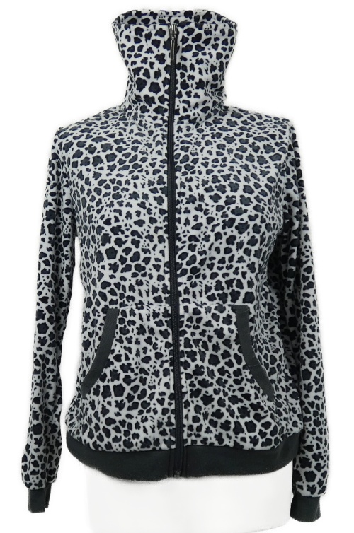 • Dámská šedo-bílá vzorovaná sametová propínací mikina s rolákem