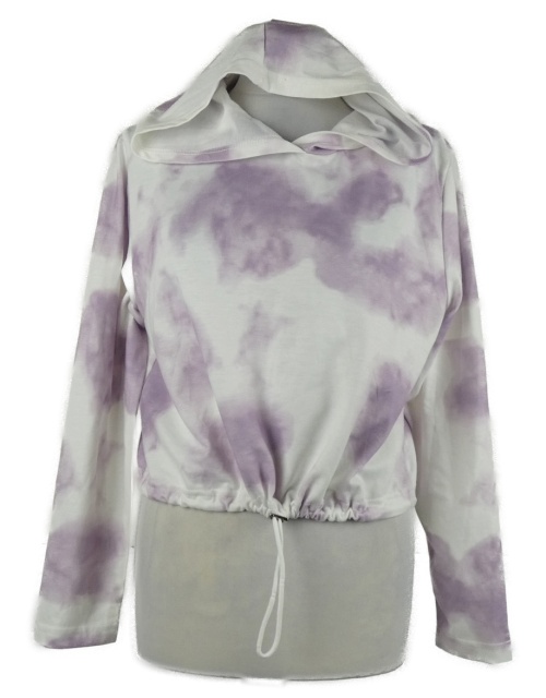 Dámská lila-bílá batikovaná crop mikina s kapucí