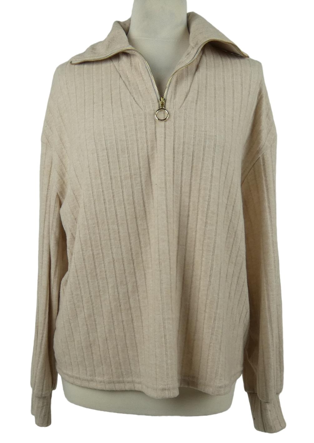 Dámská béžová žebrovaná úpletová mikina s límečkem Shein