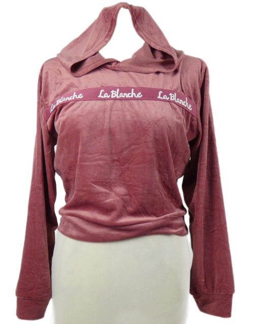 • Dámská světlevínová plyšová crop mikina s logy a kapucí La Blanche