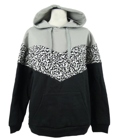 Dámská černo-šedá vzorovaná mikina s kapucí Fluid