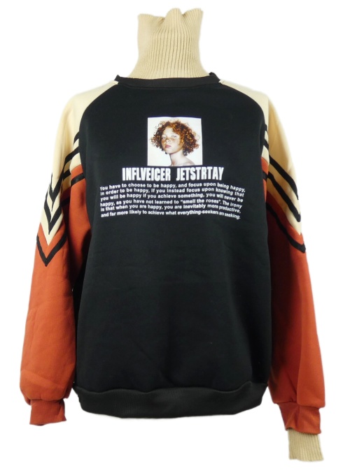 Dámská černo-béžovo-cihlová oversized mikina s potiskem a rolákem