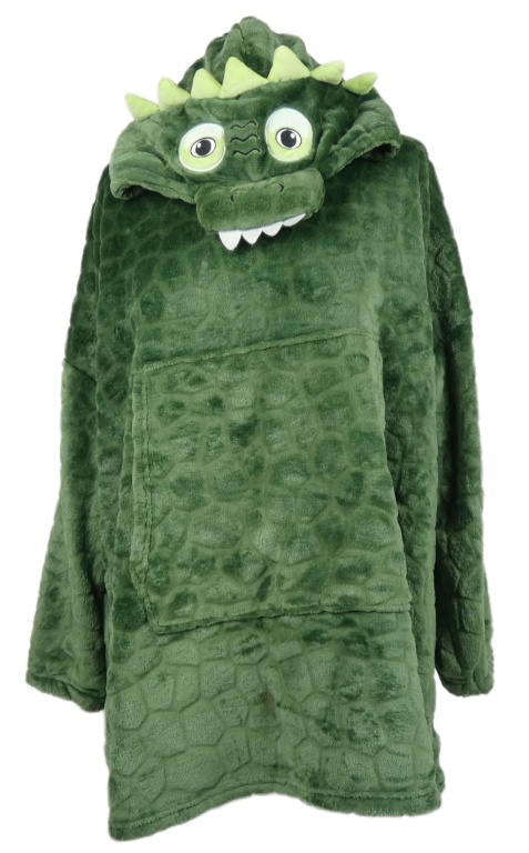 • Dámská zelená plyšová oversized domácí mikina s kapucí - dinosaurus Nutmeg