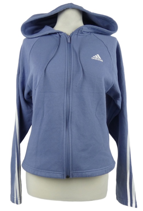 Dámská chrpově modrá propínací mikina s pruhy a kapucí Adidas