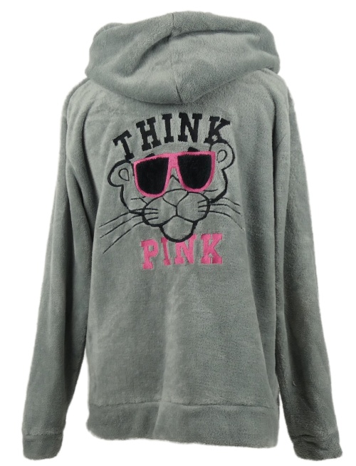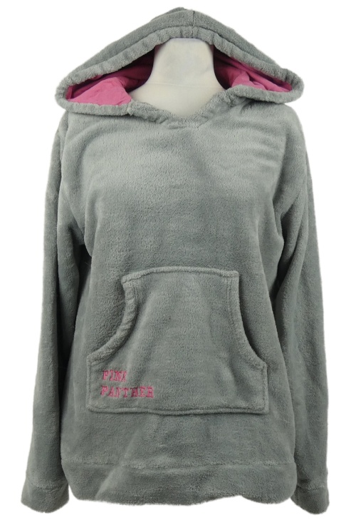 Dámská šedá chlupatá mikina s Růžovým panterem a kapucí