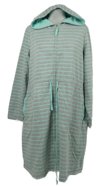 • Dámský šedo-světlemodrý pruhovaný teplákový kabát s kapucí TCM