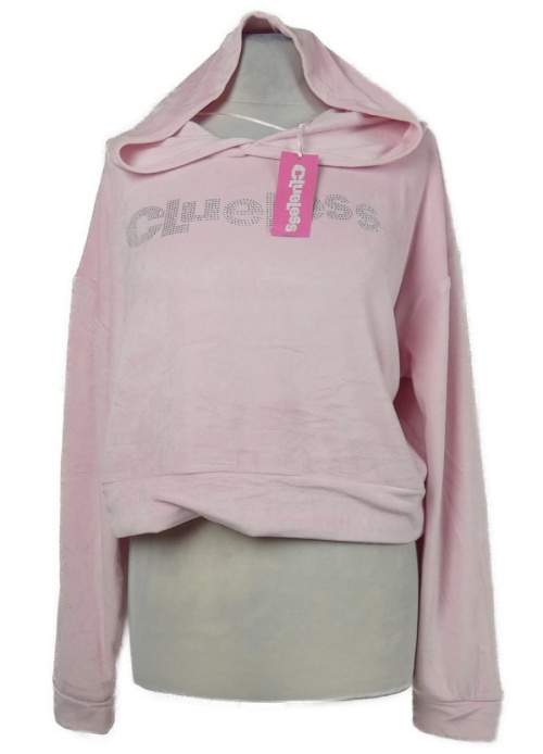 Nové - Dámská světlerůžová sametová crop mikina s nápisem a kapucí