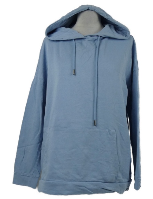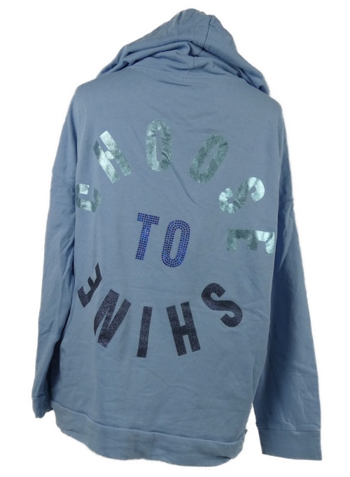 Modrá mikina s nápisem a kapucí