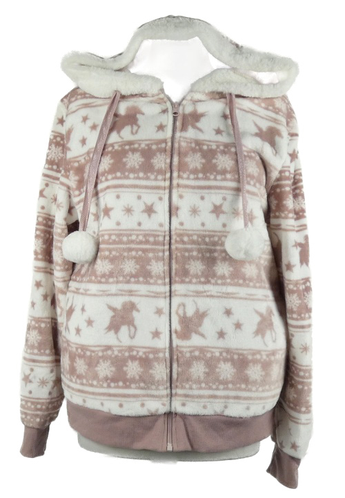 • Dámská starorůžovo-bílá vzorovaná plyšová propínací mikina s kapucí TU